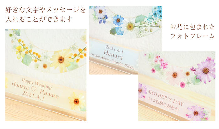 お花のフォトフレーム (文字入れオーダー付き)【Creema SPRINGS限定20%割引】