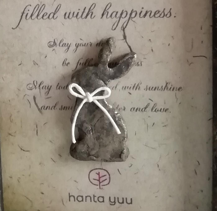 右の額には樹脂粘土で作ったうさぎが座って居ます。お花を見ているの?明日を見ているの?