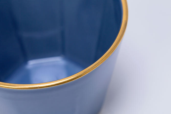 - 縁起の良い八角形の縁には、電子レンジでも使用できる”レンジ金”という特殊な金彩を職人さんにより、1つ1つ丁寧に塗ってもらっています。