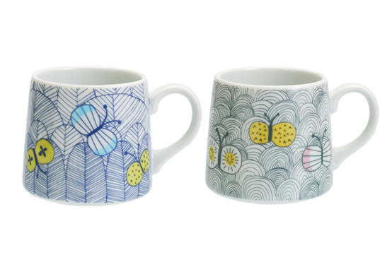 - チョウのマグカップペア2点セットと、楕円型小皿4点セットです。