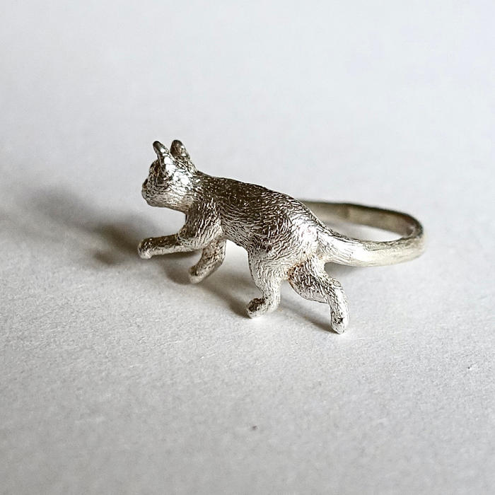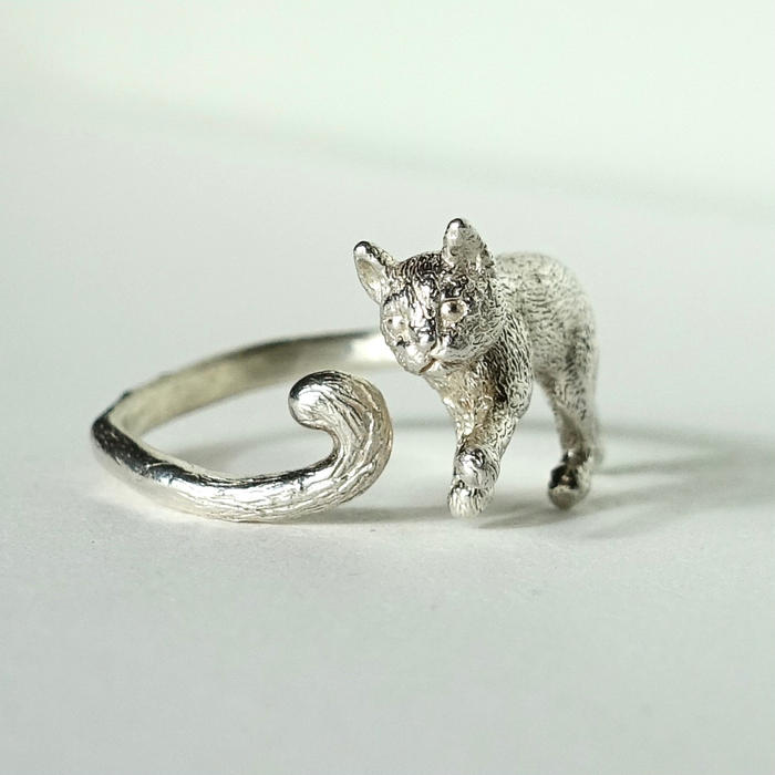 - 大人気な日本人モデルの方が保護した猫がモデルになったリングです。座っているように見えるデザインにしました。素材はシルバーです。毛並みも再現してみました。