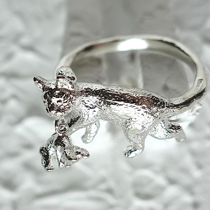 - 大人気な日本人モデルの方が保護した猫がモデルになったリングです。子猫をくわえているように見えるデザインにしました。素材はシルバーです。毛並みも再現してみました。