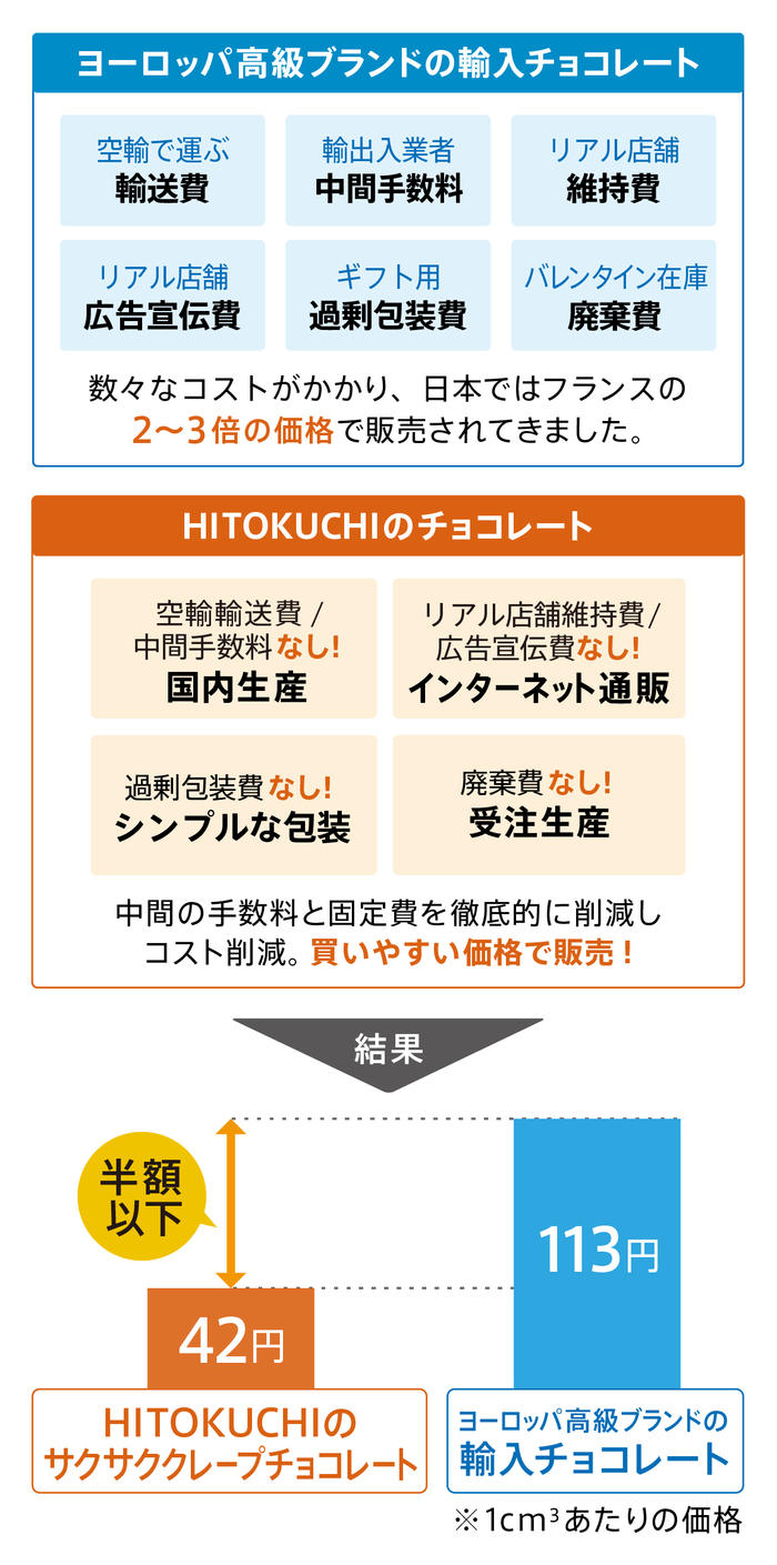 その過程で気づいたことは、日本で「高級チョコレート」と称されるチョコレートは、本場フランスの2倍以上高い価格で販売されているということです。