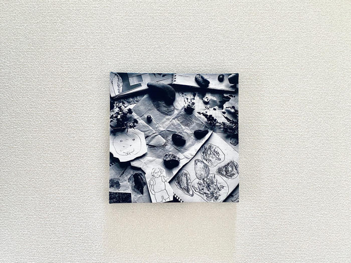 モノクロームのフィルターをかけることで、作品に仕上げる前の頭の中といったイメージにしました。』 -