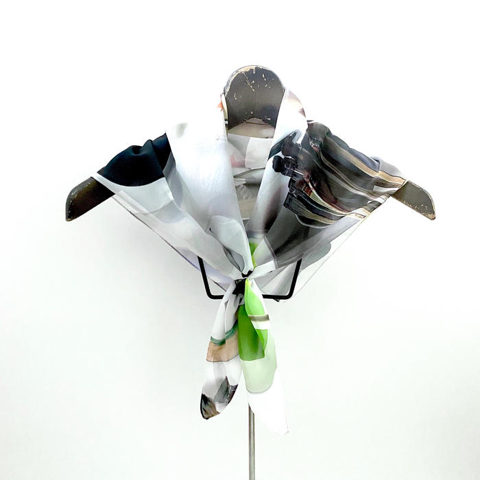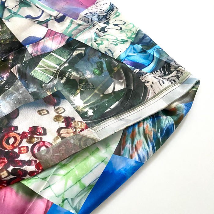 スクエアデザインをそのままスカーフに仕上げます。