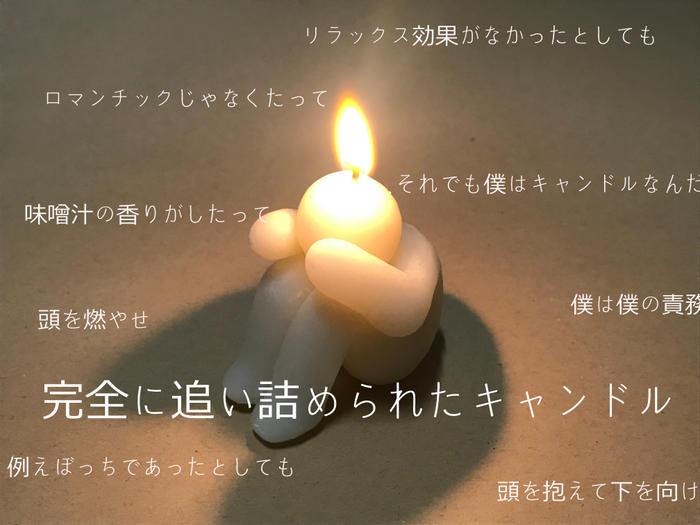 皆さんが日々を楽しんだ分だけそれは明確に私たちの日常を変化させます。ぜひ、そんな変化を作る役目をこの完全に追い詰められたキャンドルたちに担わせてやってください。