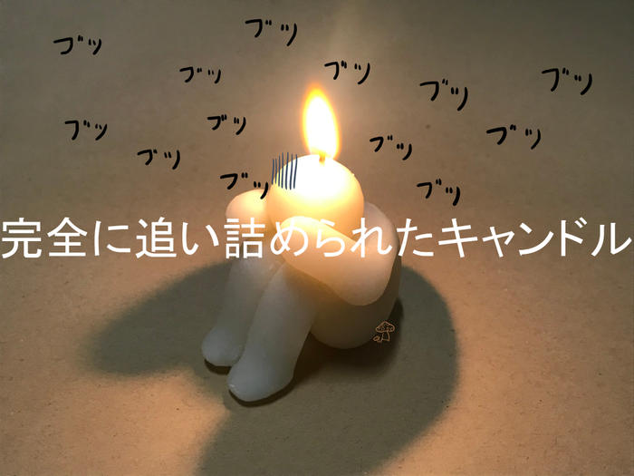 どうしたら、「無駄に笑える」を形にできるのか真剣に考えた結果、辿り着いたのが「完全に追い詰められたキャンドル」でした。それではここから、「完全に追い詰められたキャンドル」について詳しく説明します。 -