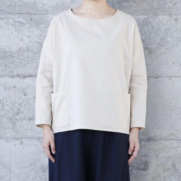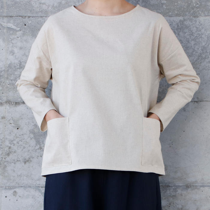 - ◎シンプルな形に大きめポケットが付いたプルオーバーシャツ
