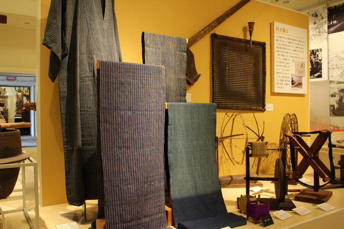 紡ぎ、草木で色に染めて、手織り機にて製造しておりました。