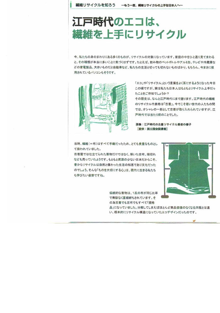 - 上記の資料のように繊維製品のリサイクル率は非常に低い水準のままです。