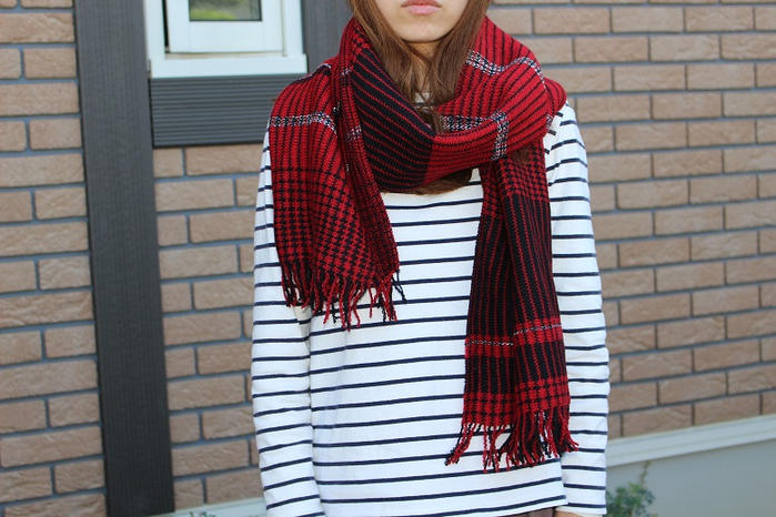 <Owarishima 赤/黒 マルチボーダーマフラー>