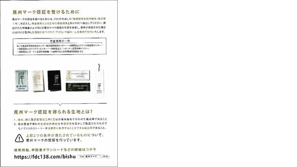 - 公益財団法人一宮地場産業ファションデザインセンターが発行する産地認定マーク「尾州マーク」を広く認知していただき、繊維産地の活性化につなげたい。