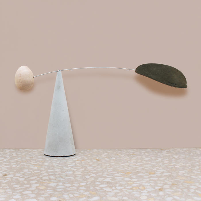 与えられた不安定な環境の中で、自然界に無償に存在するものと自分の命だけで、綱渡りのように懸命に自分の実を結ぶ姿をモビールで表現しました。