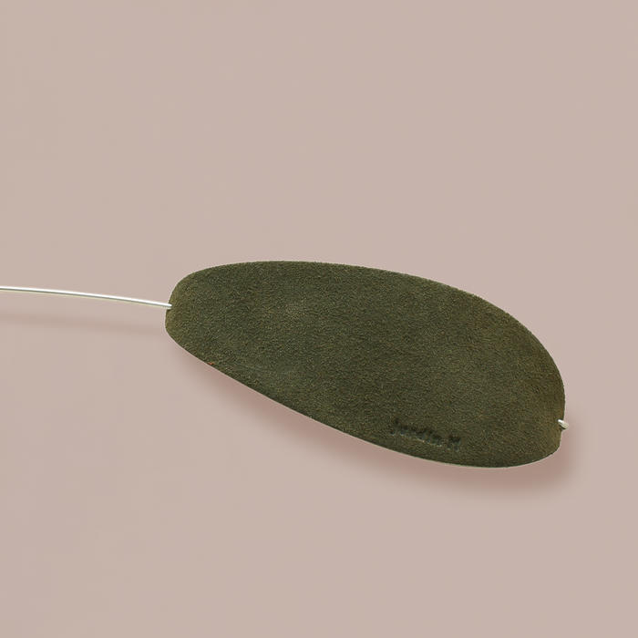 レザーパーツは肉厚なベロア革を2枚貼り合わせて、風を受けやすいように船の帆のように弛ませ、弧を描いたデザインになっています。