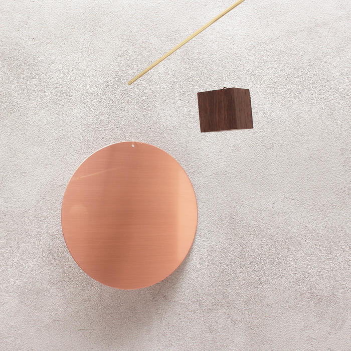 まるいパーツは銅製で、ひとつひとつ丁寧に手作業にて、ヘアライン加工・クリア塗装を施しました。