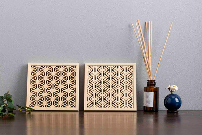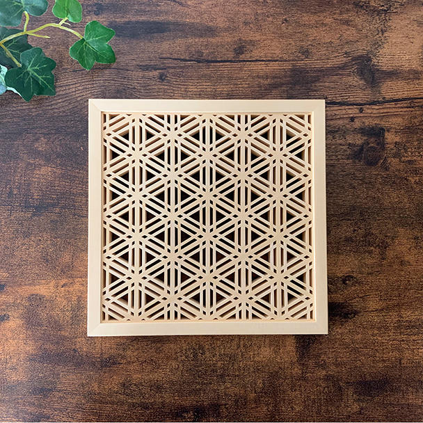 - 壁にかけて組子細工を楽しむウォールデコです。北欧インテリアのファブリックパネルがモデルとなっています。