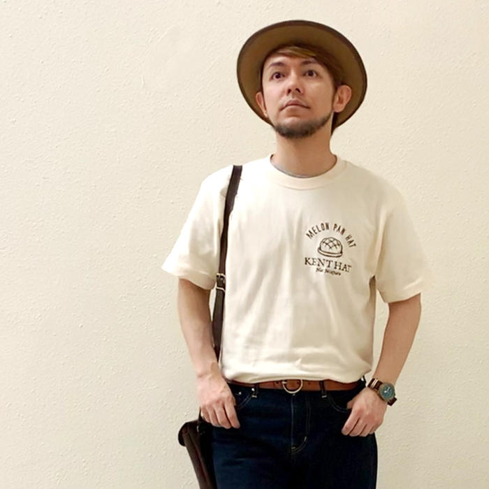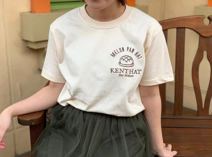 胸元にさり気無く刺繍されたメロンパンハットが可愛いTシャツです♪