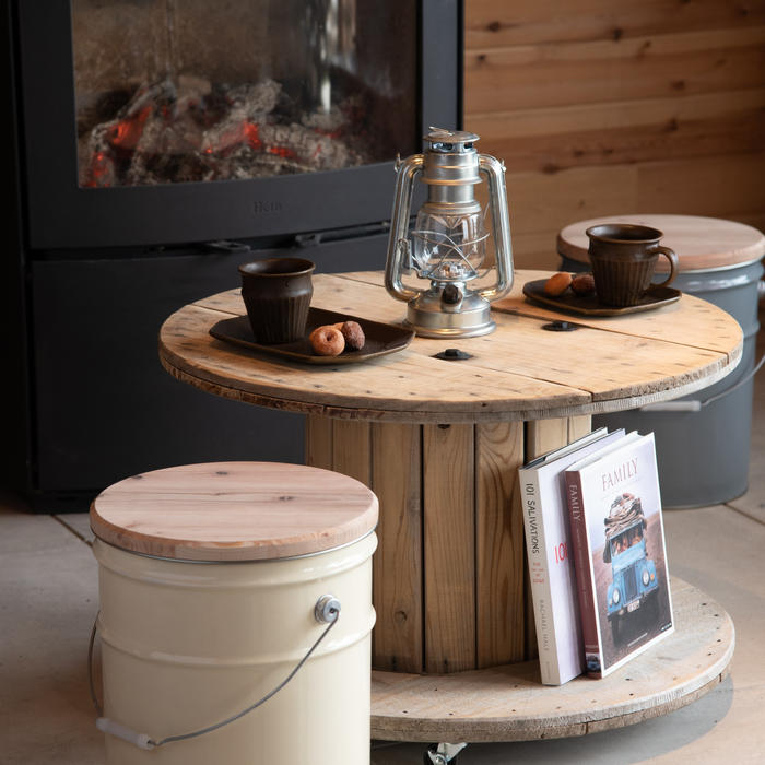 - 本来は電線を巻くケーブルドラムを、オシャレに生まれ変わらせました。