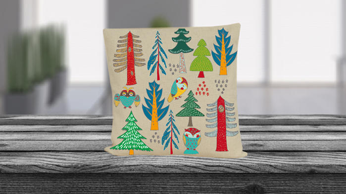 この森のクッションは「きとぷらす」のオリジナルのデザインです。