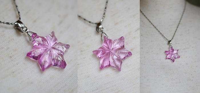 甘酸っぱい初恋。恋する乙女心をさらにキュンをさせるような可愛らしいガラスの花ペンダントです。淡い薄紅色の「エルビウムピンク」にゴールドラメを施しています。伸びやかでスタイリッシュな六枚の花びらが印象的な繊細なガラスの花をどうぞお楽しみくださいね♪