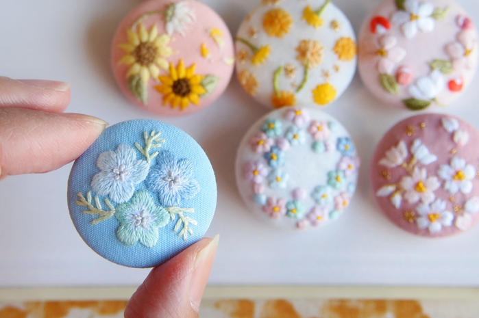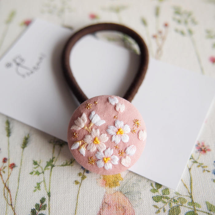 【3個セット】選べる!手刺繍ヘアゴムorブローチ