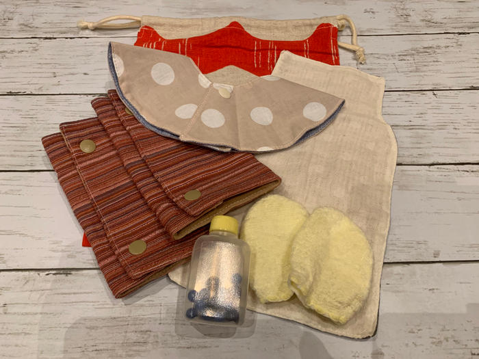 - ★おむつ入れ巾着袋(サイズ:28㎝×22㎝ 素材:綿80%麻20%)
