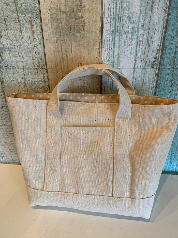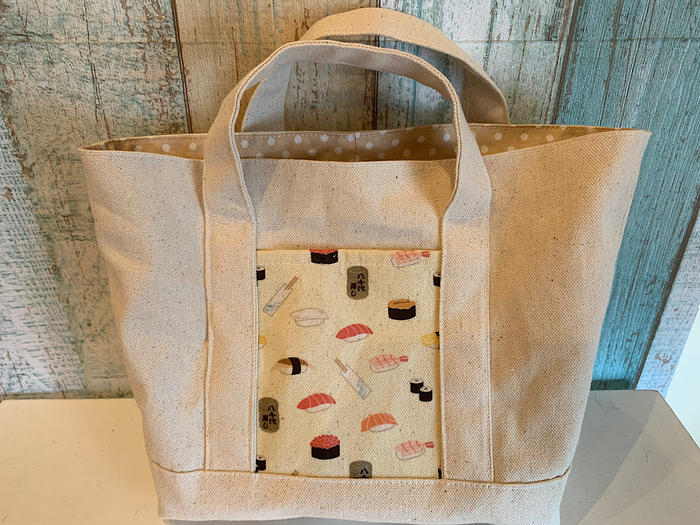 - トートバッグの大きさは、縦20㎝×横22㎝、マチ10㎝。
