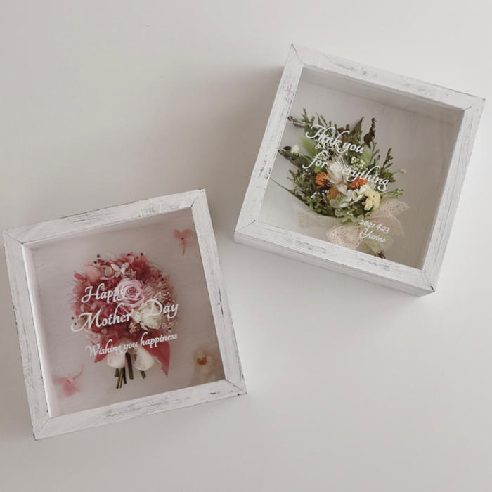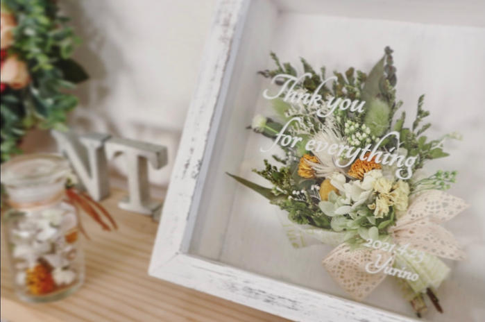 お花も文字も完全オーダーメイドで、この世にひとつしかない、ご自身用のインテリアフレームをお作りします。 -