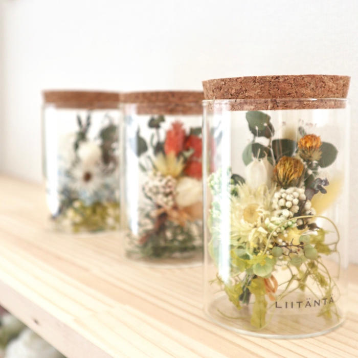 - 一部の商品にドライフラワーのユーカリを使用、それ以外のすべての花材はプリザーブドフラワーを使用しています。