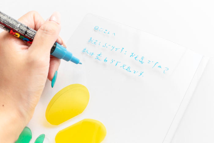 - プラスチックのような素材ですので、文字を書くときはポスカ、マッキーなどの油性ペンをお使いください。