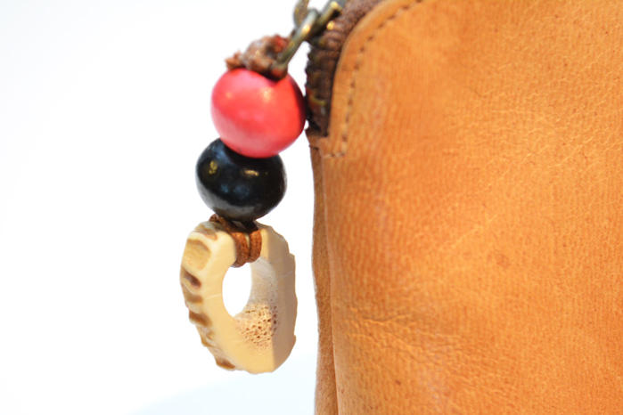 - 鹿の角を加工し、ウッドビーズと組み合わせて持ち手にアクセントもプラスしました。