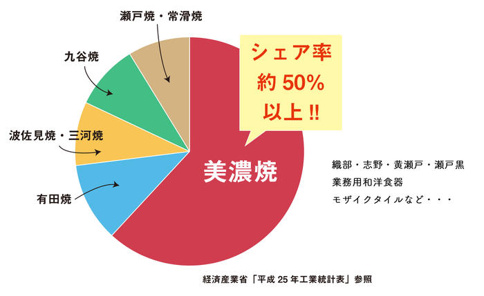 - 美濃焼産地の東濃地域では数百社の美濃焼メーカーがあり、
