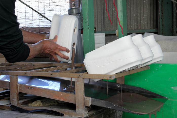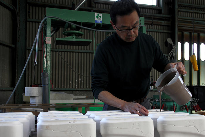 - 丸健製陶では型を使用した鋳込みという成形方法で生産しています。