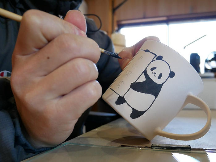 - 文字入れ面の反対側にもパンダの絵付けをします。