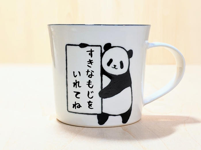 - パンダが持っているメッセージボードに文字を入れ、オリジナルのマグカップを作ります。