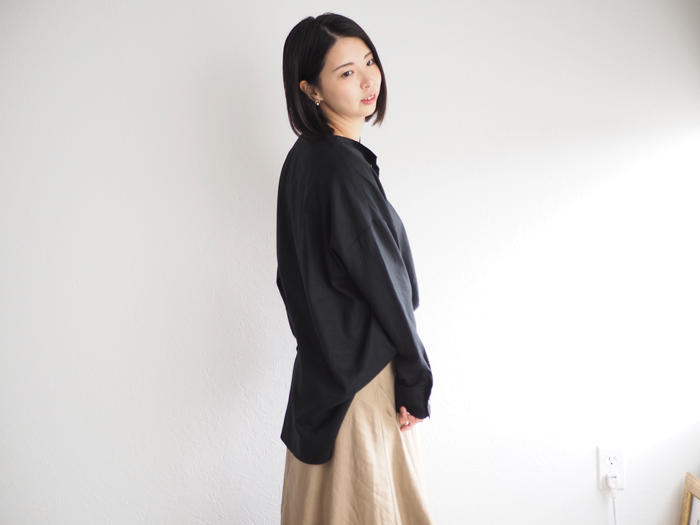ビッグシルエットのリネンコットンシャツ