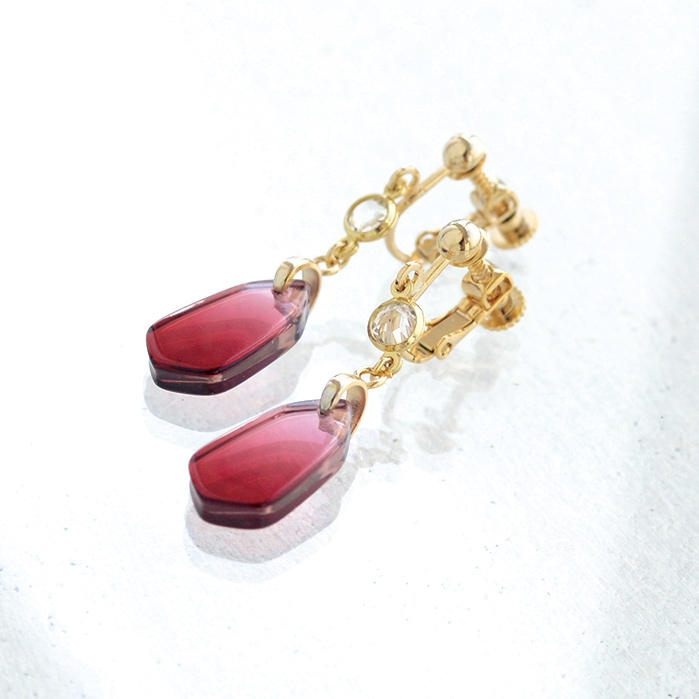 小さなガラスとアセテートの ピアス イヤリング - グラデーションワイン -