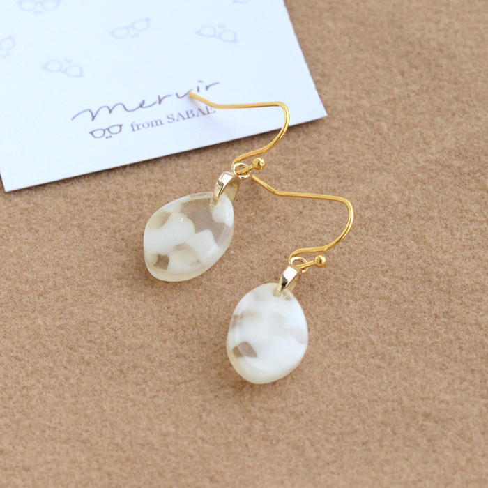 めがねの欠片 ビーンズピアス・イヤリング - ホワイトスノー -