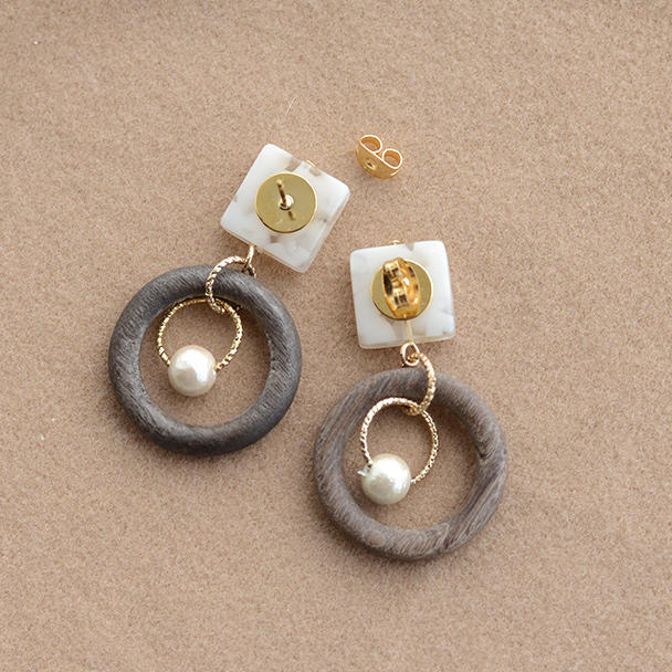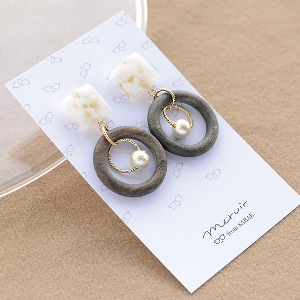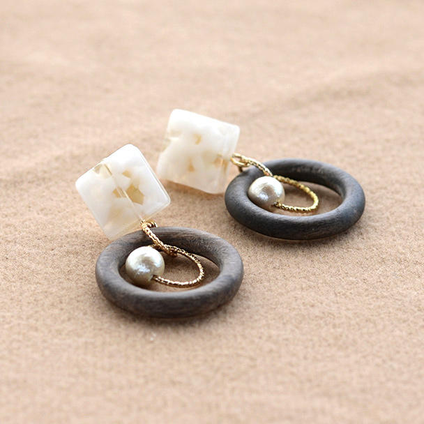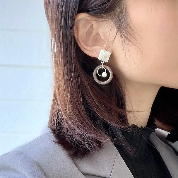 ウッドとアセテートのカジュアルピアス・イヤリング
