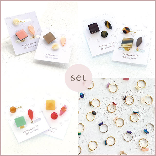 めがねの欠片ピアス(イヤリング)3種とピンキーリングセット