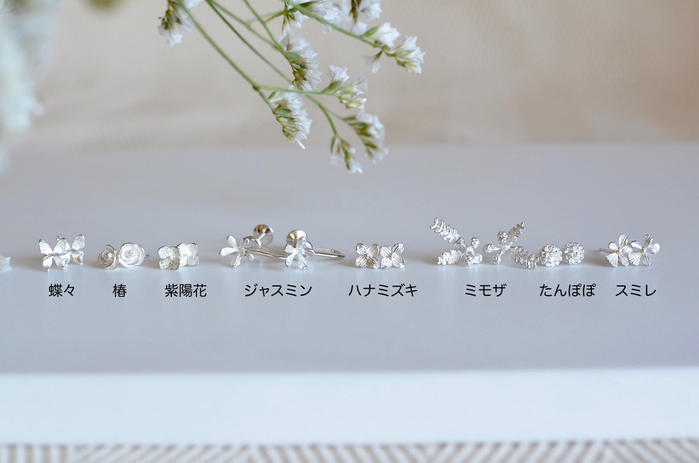 サイズ;花約7×7mm(ミモザ7×10), ポストΦ0.7×10.5mm イヤリング金具