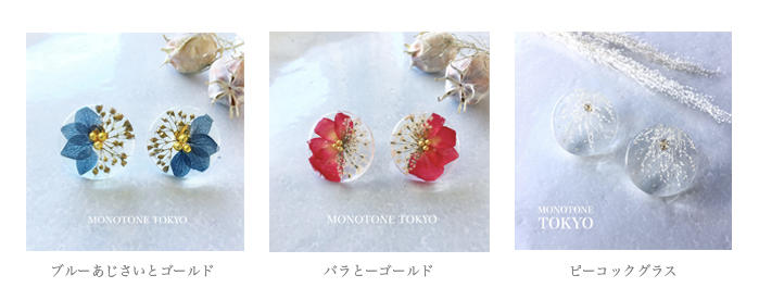 3種類のボタニカルピアス&イヤリングからおひとつお選び頂けます。