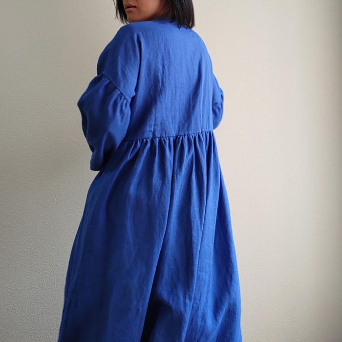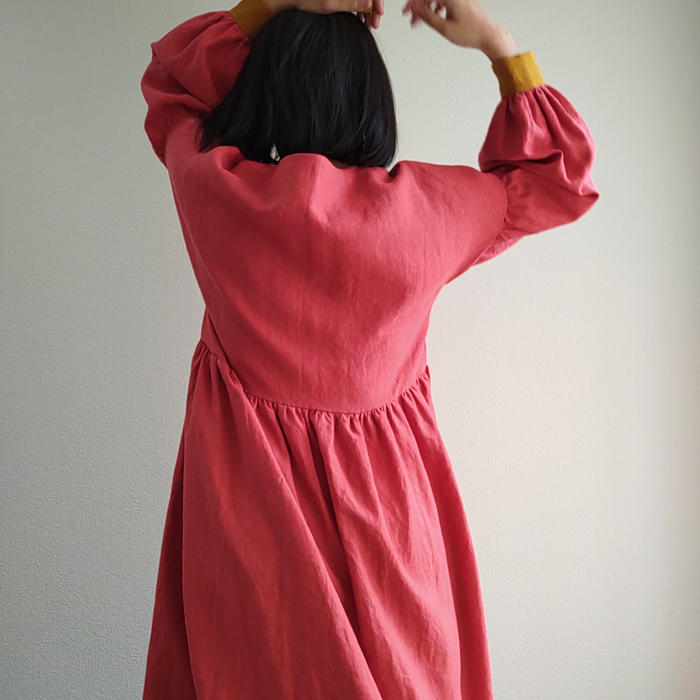 前後のスカート、袖にはたっぷりのギャザーを入れて