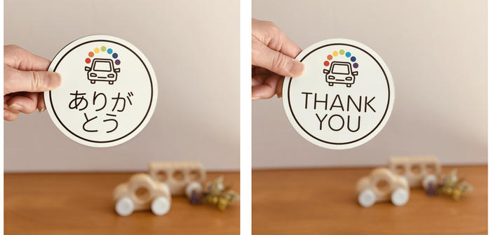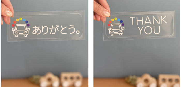 - 「ありがとう」の他に、さまざまな車種や年齢層の方に合うよう