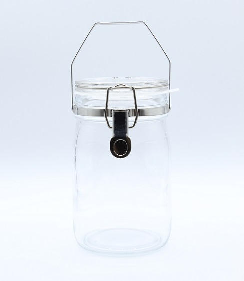 - 小さなパーツまですべて日本製の密封瓶です。広口で中身を取り出しやすく、持ち運びにも便利な取っ手付きのものを選びました。