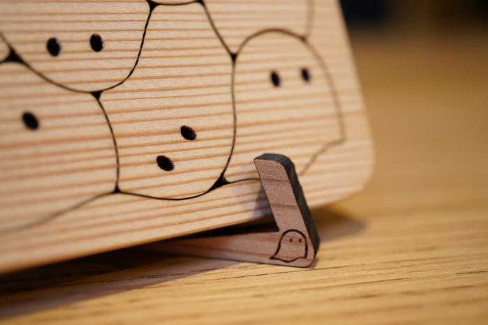 - どのおばけも軽くてやわらかい風合いと淡い桃色の美しい木目、ほのかな香りもお楽しみいただけます。※おばけパズルの木目の形や色はひとつずつ異なります