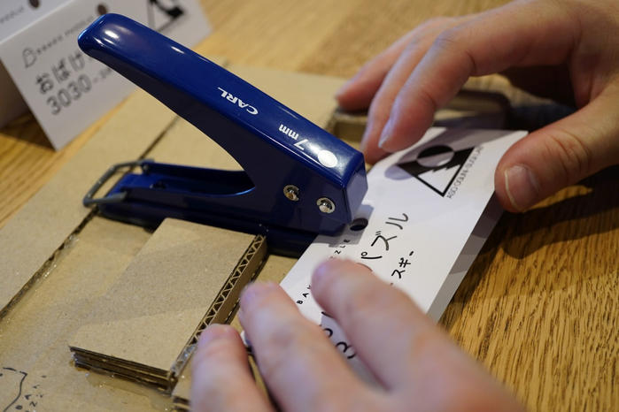 - つりさげられるパッケージや説明書もデザインし、自分たちで加工しています。
