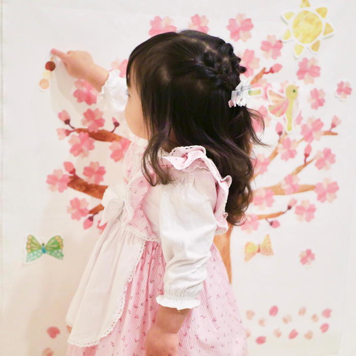 - 壁に飾るだけでお部屋の中がパッと華やかになり、お家の中でお花見をお楽しみいただけます。ペタペタ貼れるオーナメントで好きなところに飾り付けできるので、自分だけの桜タペストリーが作れます。