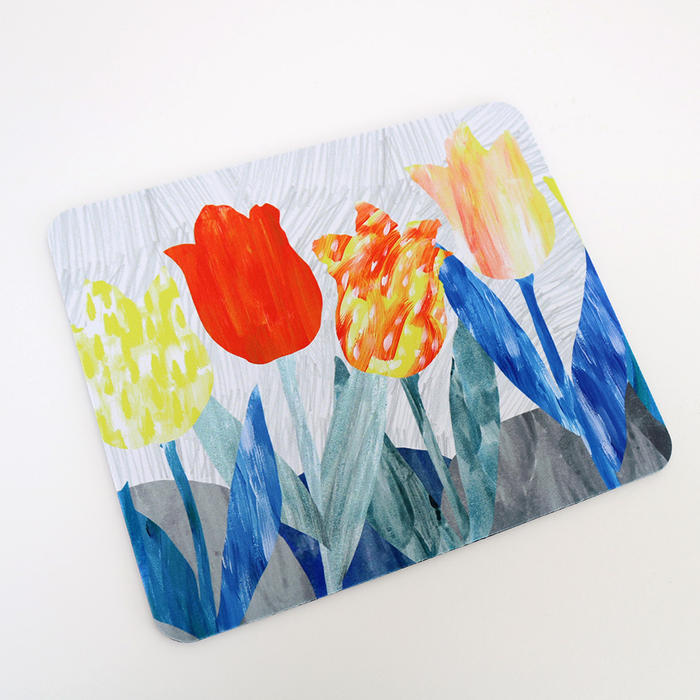 - 個性豊かなチューリップがおしゃべりしているところを描いた、オリジナルテキスタイル『おしゃべりチューリップ柄』のマウスパッドです。華やかな彩りを暮らしに取り入れて心を明るく保ちたいですね。
