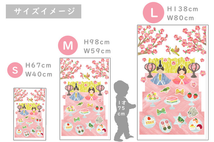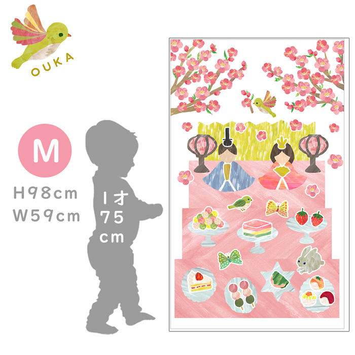 Mサイズ:ペタペタ貼れるひな祭りタペストリー